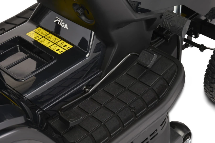 De AT4 84 HA is een compacte tuintraktor en kenmerkt zich door zijn uitstekende veelzijdigheid en superieur rijcomfort. De tuintraktor wordt aangedreven door een Stiga 414 cc ST 400 1 cylinder viertaktmotor met een vermogen van 6,3 kW bij 2400 toeren per minuut. Het maaisysteem is uitgerust met een dubbele messenmaaier met een maaibreedte van 84 cm, die centraal kan worden versteld in 7 posities, van 25 tot 80 mm. Dit zal helpen de juiste houding te vinden voor elke situatie. De AT4 84 HA heeft een voetpedaalgestuurde hydrostatische aandrijving, een wenselijk kenmerk waarmee u de rijsnelheid kunt regelen zoals u dat zou doen met een auto met automatische transmissie, hoe meer druk op het pedaal, hoe sneller u gaat.
