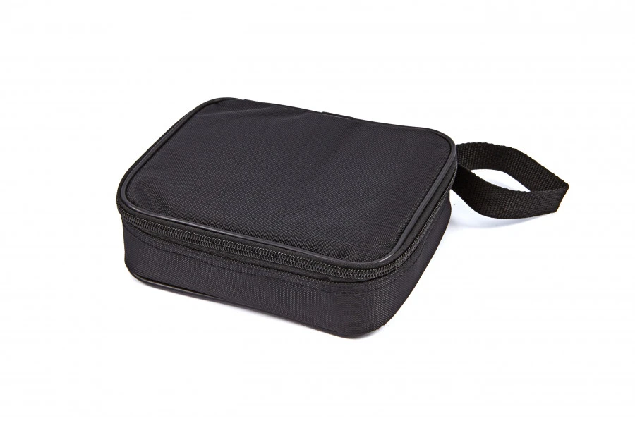 De multimeter, de bijbehorende probe (voorzien van afdekkapjes en ca. 80cm lange kabels) en het bijgeleverde thermokoppel, worden geleverd in een fraaie zwarte etui , voorzien van aparte opbergvakjes.