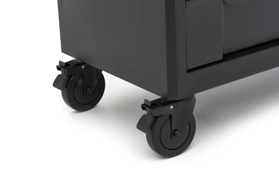 Met een ovale metalen zijhandgreep en 5 inch zwenkwielen (waarvan 2 met remmen), is deze wagen gemakkelijk te verplaatsen en te positioneren waar je maar wilt. Daarnaast is er een handig roestvrijstalen werkblad bovenop, ideaal voor het uitvoeren van projecten of het tijdelijk neerleggen van gereedschap. Elke lade is bekleed met 2.5mm PE-voeringen om je gereedschap te beschermen en de lades soepel te laten schuiven.