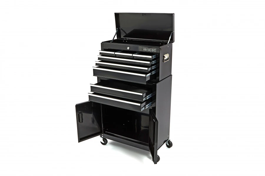 Met de HBM Gereedschapswagen inclusief Opzetkast in stijlvol zwart, heb je vanaf nu al je gereedschap georganiseerd en binnen handbereik. Deze gereedschapswagen is een praktische, eenvoudige en duurzame oplossing voor elke werkplek.