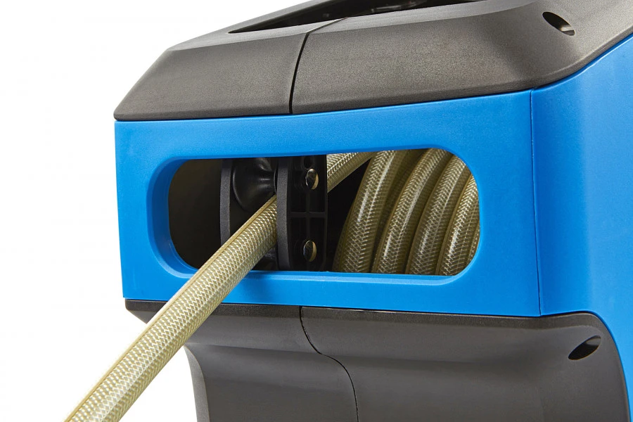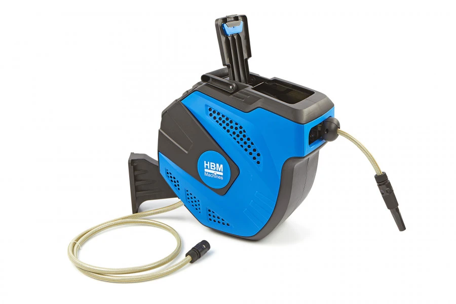 De HBM Waterhaspel, slang-wandcassette beschikt over een automatisch vergrendelings- en intrek-systeem. De slang kan eenvoudig worden uitgetrokken en na montage draait de cassette 180° met u mee zodat elke plek in de tuin kan worden besproeid. Na elke sproeibeurt rolt de slang moeiteloos en zonder verdraaiing weer op. Naast een traploze verstelbare tuinspuit wordt de aansluiting op de kraan meegeleverd. De slang-wand cassette kan eenvoudig middels de meegeleverde beugel aan muur of schutting worden bevestigd. Ook wordt het benodigde bevestigingsmateriaal hiervoor meegeleverd. Tijdens de wintermaanden kan de slang-wandcassette zo nodig voor het opbergen weer losgekoppeld worden. LET OP de 15 meter variant is niet voorzien van de klep boven op de behuizing.