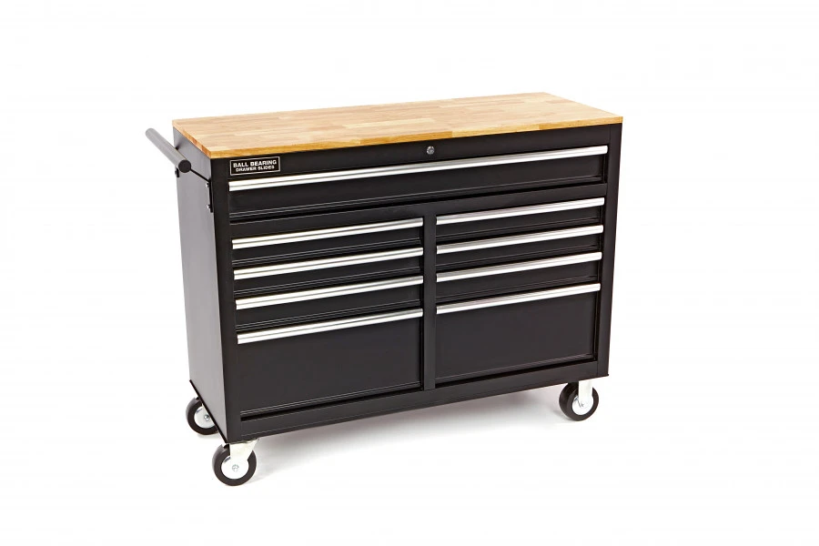 HBM Verrijdbare Gereedschapswagen Met Houten Werkblad – 117 Cm – Zwart